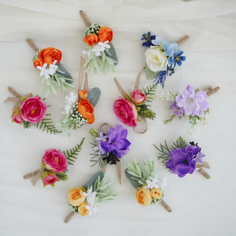Artificial Boutonniere and Corsage Set for Groom & Guests – Lifelike Faux Florals with Vibrant Ranunculus, Greenery