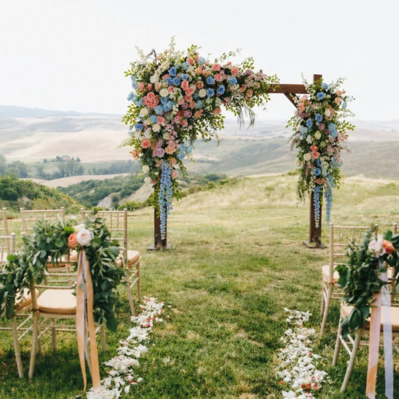 Designed for the rigors of all-day outdoor celebrations, these high-quality silk florals stay vibrant and beautiful regardless of heat, wind, or sun. They are lightweight for easy installation, allergy-free, and require no maintenance. After the ceremony, the aisle markers and arch pieces can be repurposed as stunning home or event decor for years to come.