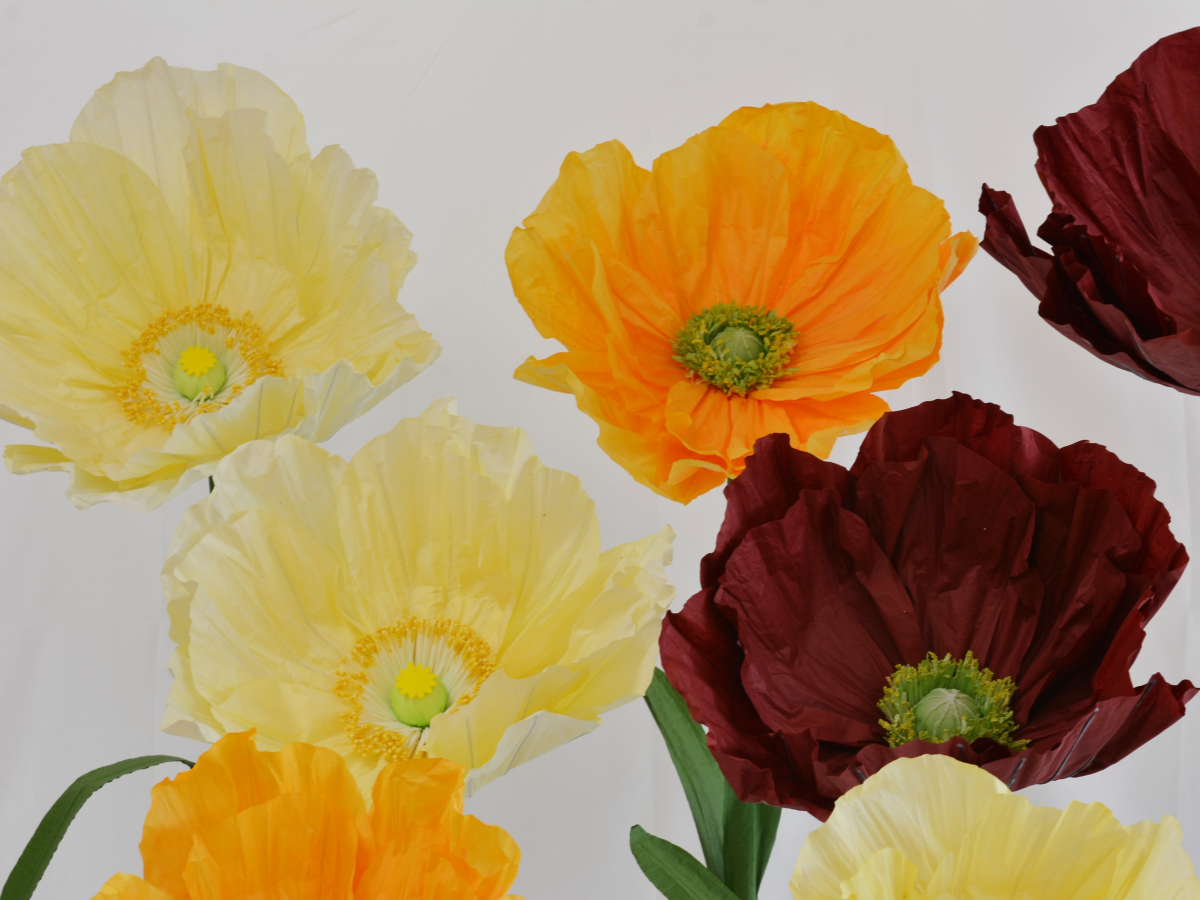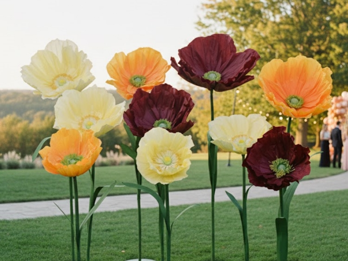 Giant Standing Poppy Flowers – Oversized Sculptural Decor for Wedding and Event Backdrops