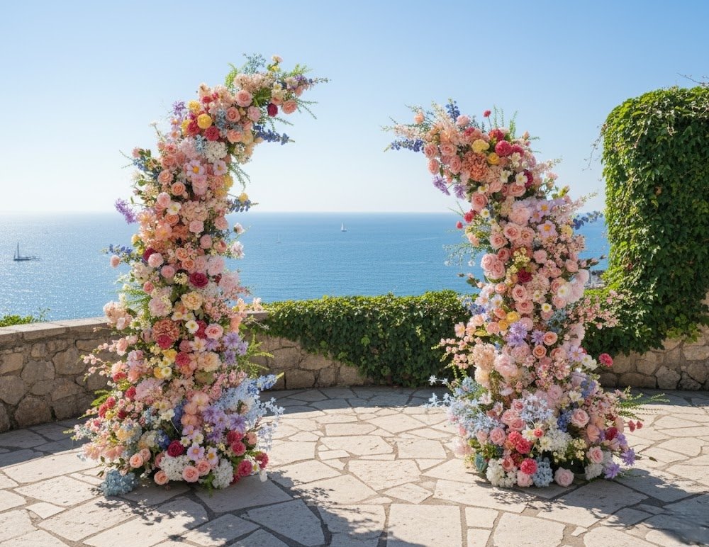 🌸 A graceful floral duo designed to add height and elegance to your ceremony setup, featuring soft pastel blooms in a curved and airy design.