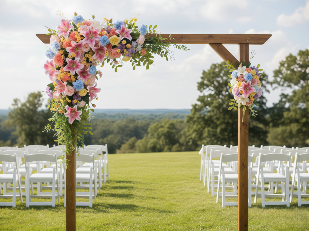 The floral pieces are flexible, durable, and designed with built-in tiebacks for secure, hassle-free installation onto any arch or frame. This durable keepsake is weather-resistant, requires no maintenance, and can be easily preserved as a lasting memento—stunning, everlasting, and hassle-free.