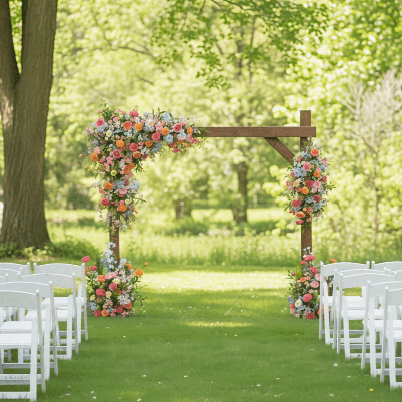 Designed for the rigors of outdoor celebrations, these high-quality silk florals remain vibrant and camera-ready regardless of the temperature, sun, or wind. They are lightweight, allergy-free, and require absolutely no water or maintenance throughout your event. After the ceremony, these pieces can be easily repurposed as stunning home decor or saved as an everlasting memento of your special day.